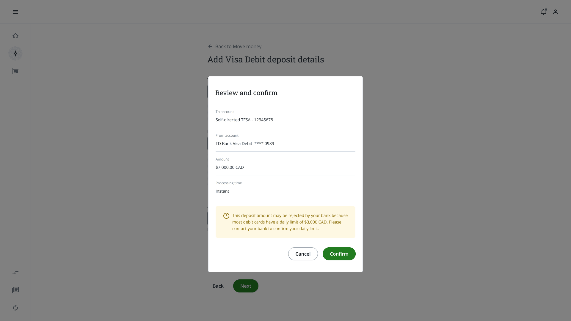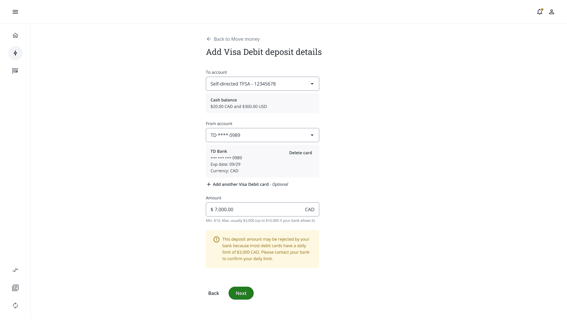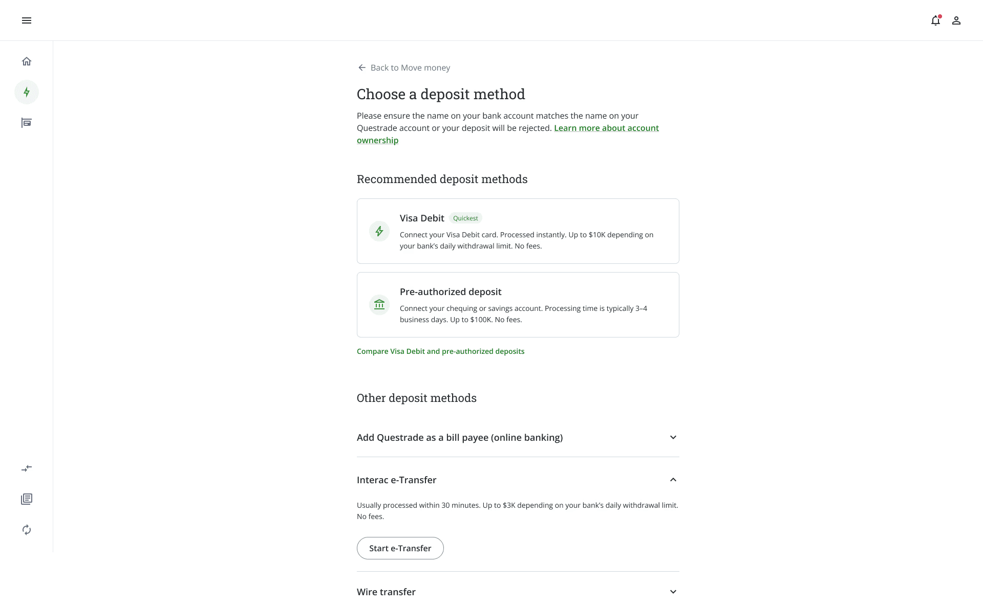 Deposits are a critical experience for Questrade customers. By improving clarity and promoting Visa Debit, we helped customers successfully fund their accounts and aligned the experience with business goals.