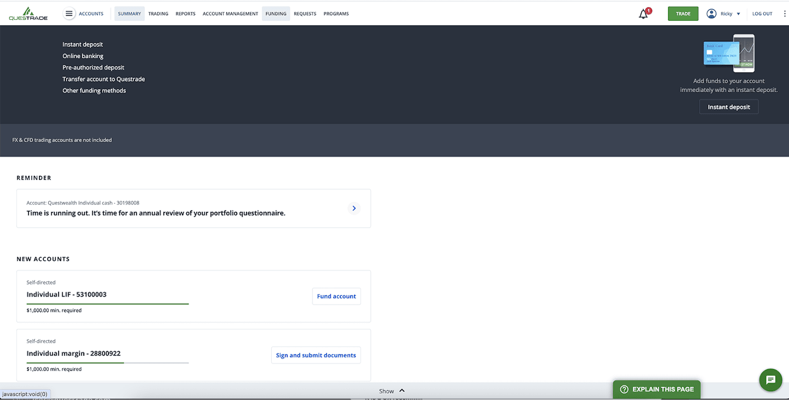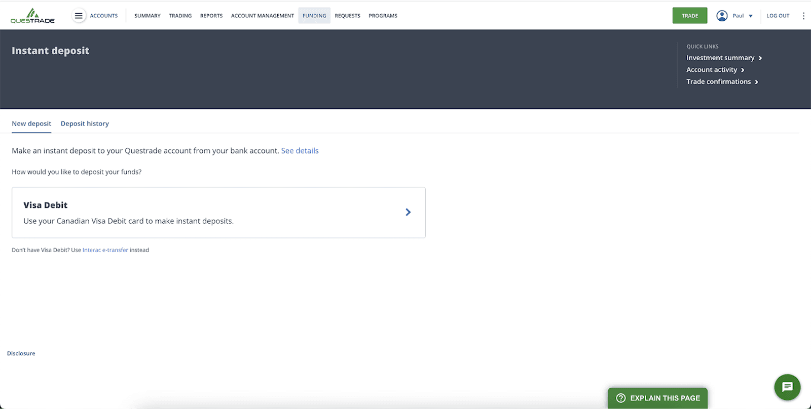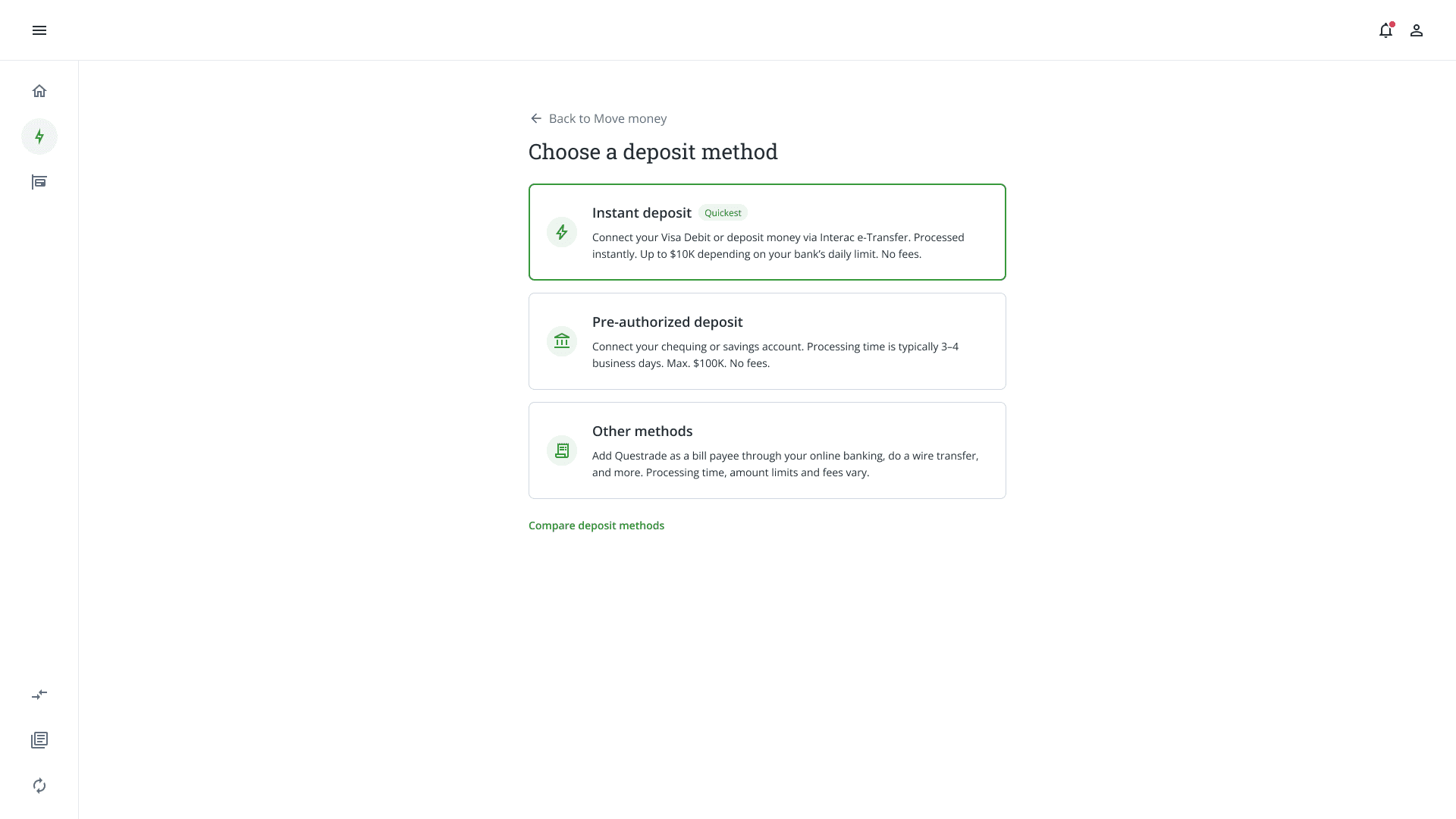 Questrade was redesigning its entire investing platform which provided an opportunity to improve the deposit experience. In addition to increasing successful deposits overall, the product team wanted to increase the number of deposits made using the Visa Debit method as this would reduce costs for the business.