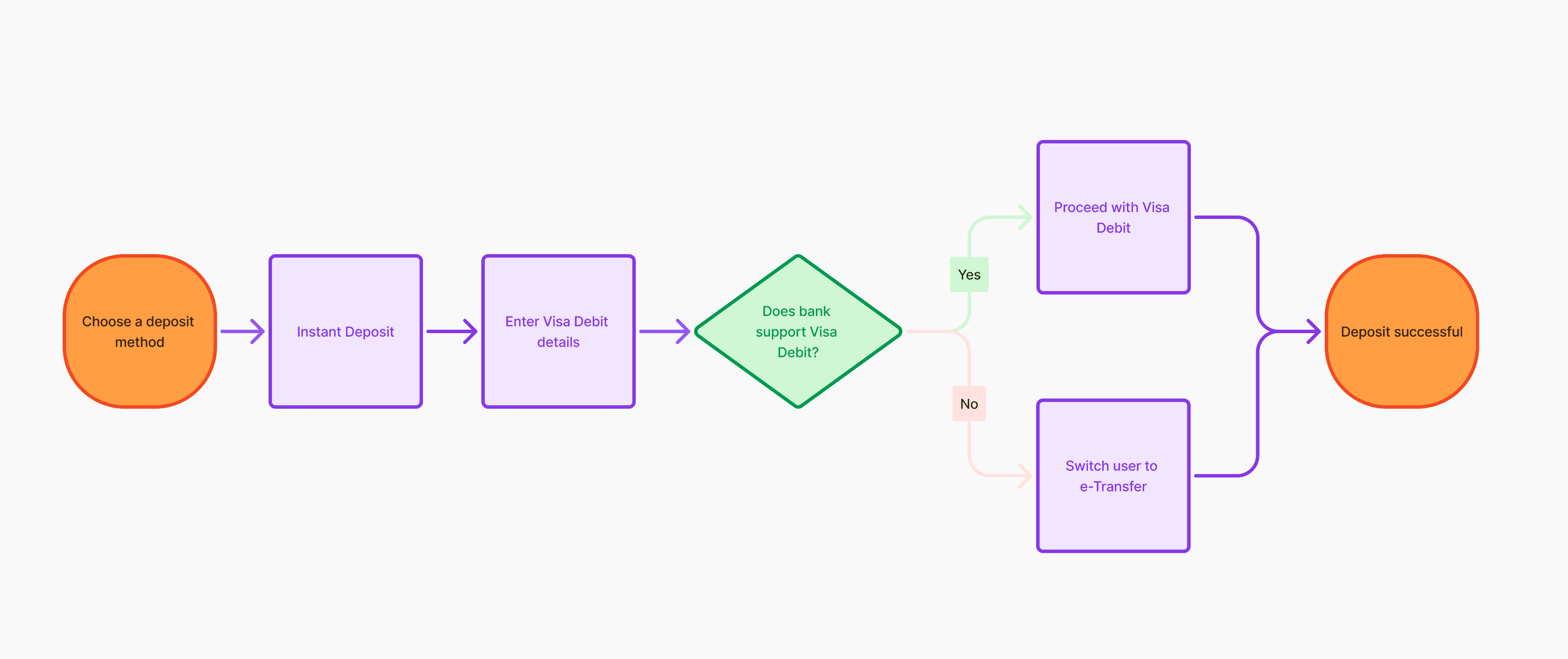 In the original flow, Visa Debit and e-Transfer were grouped together under “Instant Deposit.”